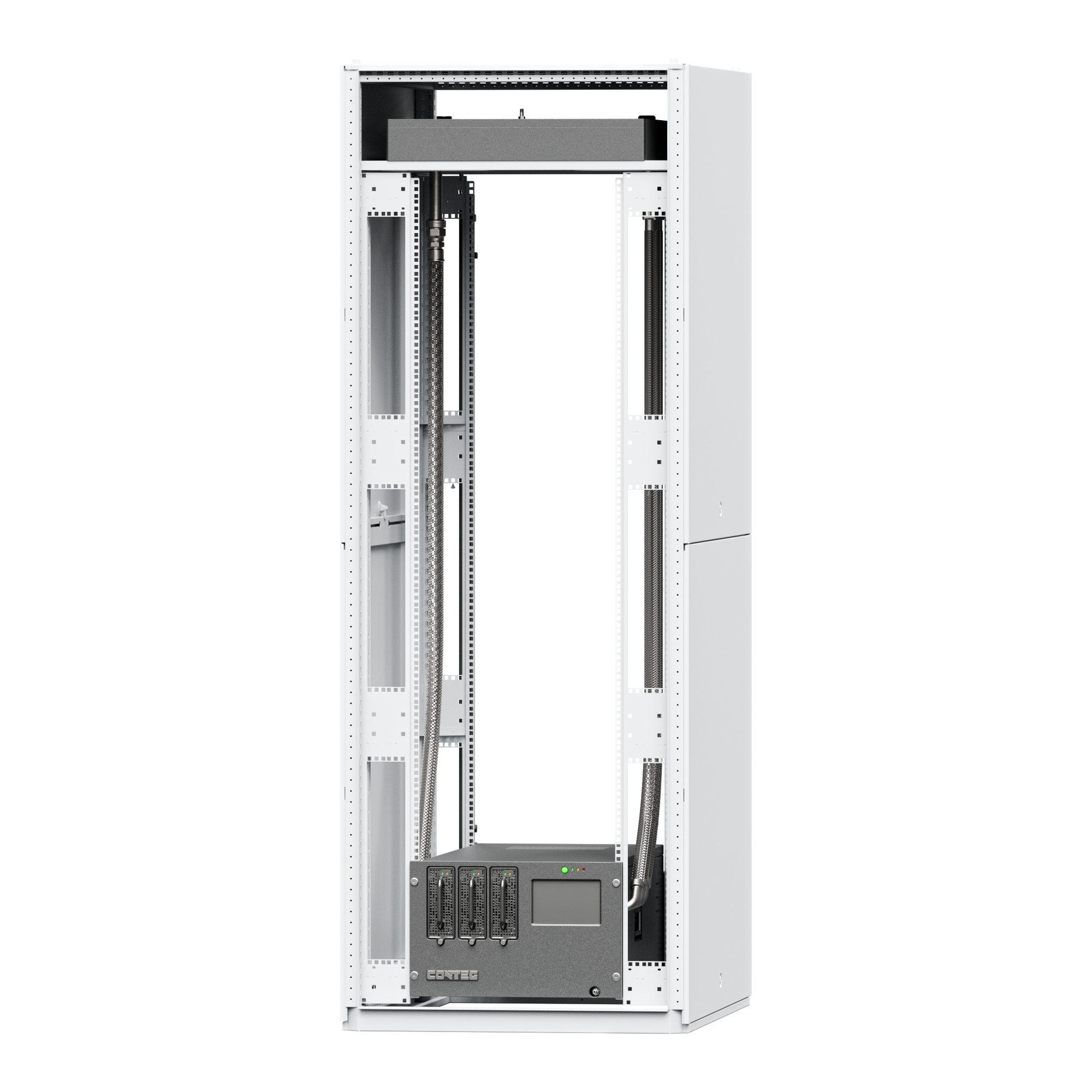Les unités de refroidissement liquide en baies CoolD2C T à deux phases (Direct-to-Chip) offrent une capacité de refroidissement pouvant atteindre 100 kW et gèrent de manière fiable la dissipation thermique des dispositifs informatiques les plus exigeants (GPU et CPU) à forte densité thermique.Les composants remplaçables à chaud dans un format en baie familier offrent une fiabilité inégalée et une facilité d'entretien sur le terrain. Le refroidissement biphasé Direct-to-Chip est conçu pour les processeurs de nouvelle génération. Il est validé à 4,5 kW par socket et élimine les flux thermiques typiques de 0,25 kW/cm² et les flux de points chauds supérieurs à 0,5 kW/cm². Un fluide diélectrique non conducteur protège les composants électroniques afin qu'ils restent en sécurité.